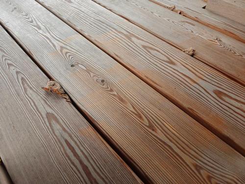 - Серение. Без регулярной обработки лиственница со временем сереет, теряет яркость. Здесь можно отметить, что некоторым нравится такой эффект, но далеко не всем, в основном покупатели склонны к покупке материала именно того цвета, который больше всего им подходит, и не готовы к изменению цвета.